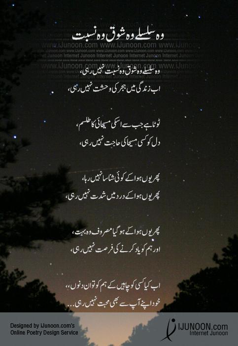 Wo silsile wo shoq wo nisbat nahi rahi,