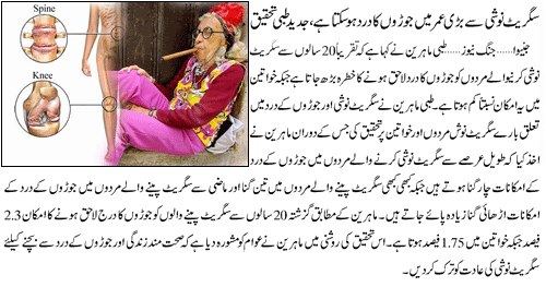 Cigrette Noshi Se Badi Umar Mein Jodo Ka Dard Ho Sakta Hai