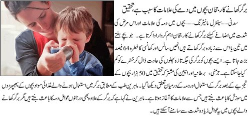 Burger Khanay Ka Rujhaan, Bachon Me Dama Ki Alamaat Ka Sabab Hai. Tehqeeq