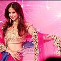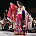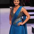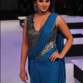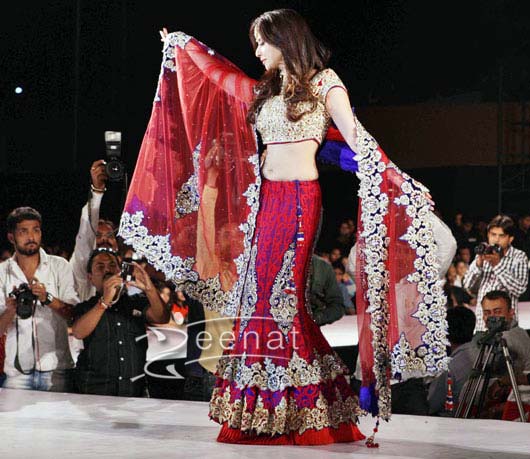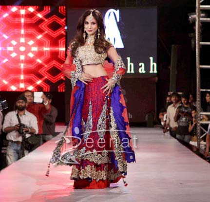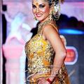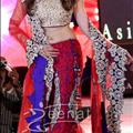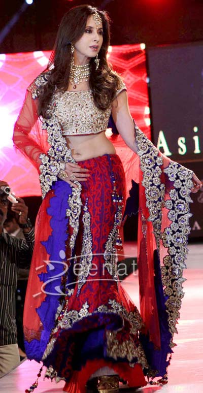 Urmila Matondkar walks the ramp in Designer’s Lehenga Choli. She is completely hidden in threads and motifs head to toe. Amazing craftsmanship is done over her dress, contrasting shades are making her dress more interesting and stylish.