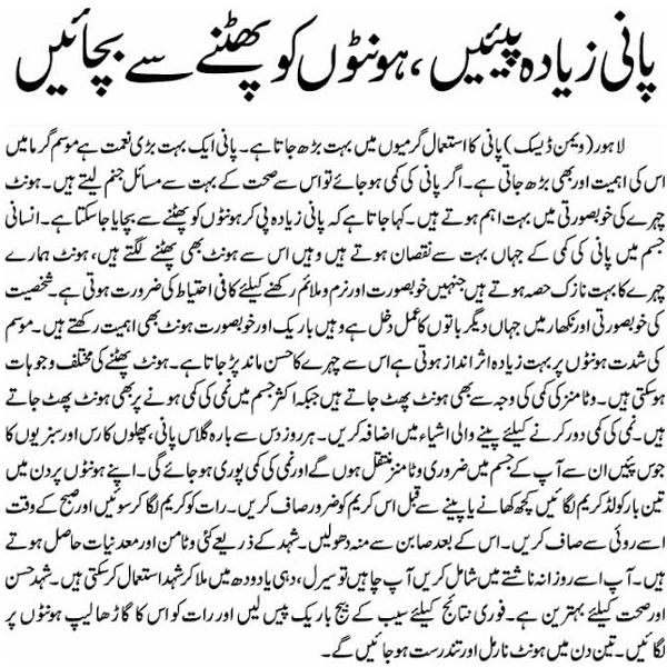 Paani Zyada Piye Aur Honton Ko Phatnay Se Bachayen